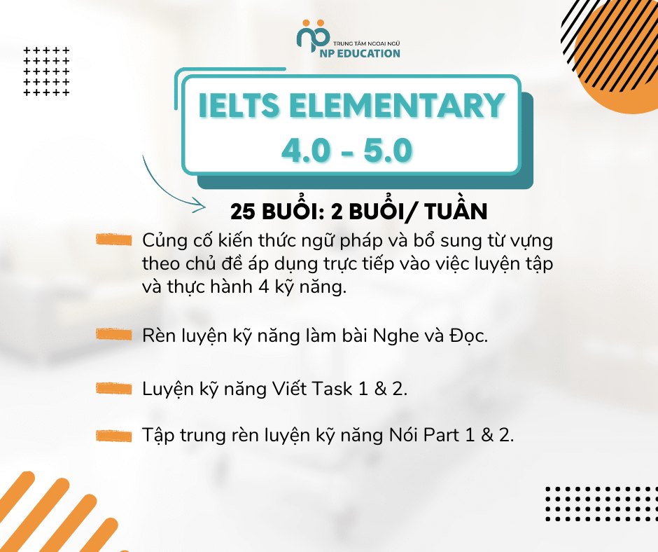 Khóa học IELTS tại NP Education được thiết kế theo lộ trình rõ ràng, phù hợp với từng mục tiêu của học viên. Đối với mỗi cấp học, chương trình học cũng sẽ khác nhau, tập trung đáp ứng những yêu cầu cần thiết của bài thi IELTS, nâng cao kiến thức, rèn luyện kỹ năng bám sát mục tiêu đầu ra.