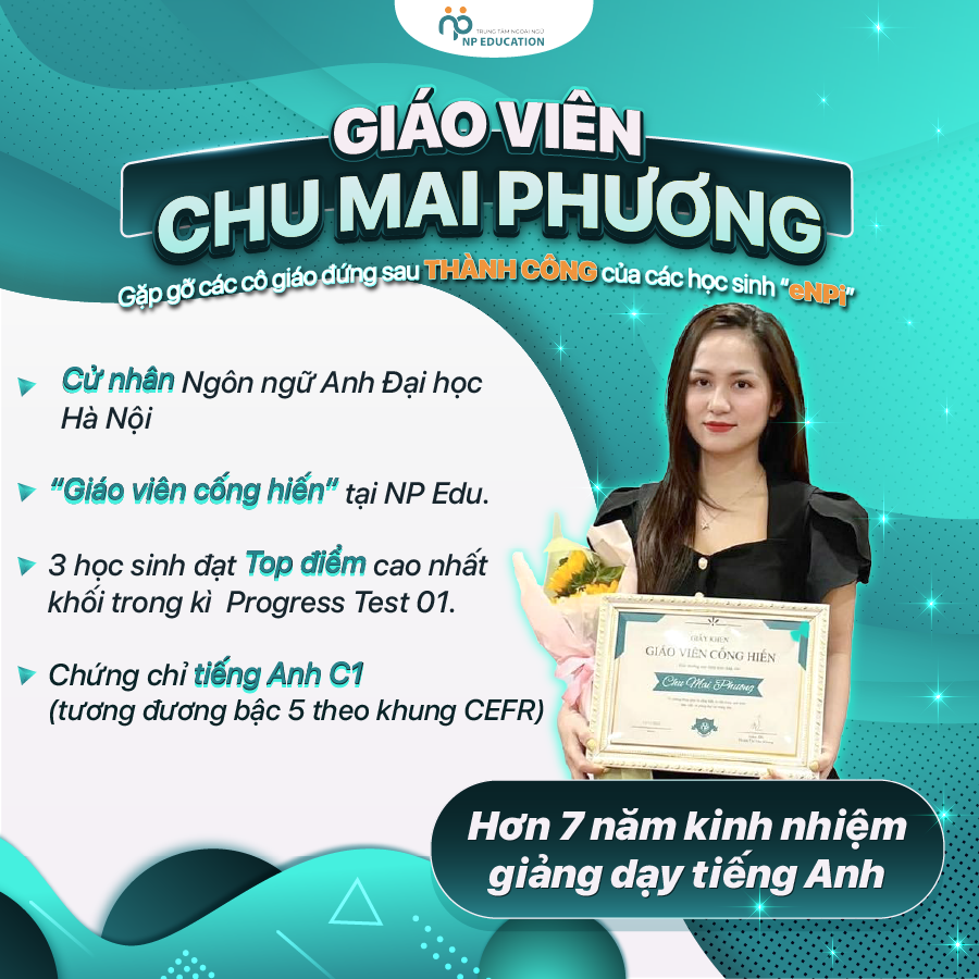 Với nền tảng theo học chuyên Anh xuyên suốt cấp 3 và tốt nghiệp Cử nhân Đại học Hà Nội chuyên ngành Ngôn ngữ Anh, cô Phương được đánh giá cao về cả chuyên môn lẫn phong cách giảng dạy. Minh chứng rõ nét nhất chính là giải “Giáo viên cống hiến” của NP mà cô đã đạt được trong năm học vừa rồi.